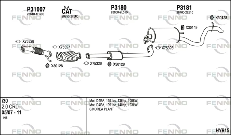 HYUNDAI i30 (FD) 2.0 CRDi - Výfukový systém - kompletní od 10/2007 do 11/2011, 1991 ccm, 103 kW, 140 hp, D4EA, Šikmá zadní část