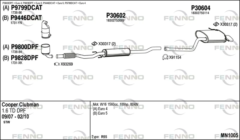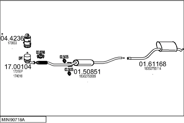MINI MINI CLUBMAN (R55) Cooper D - Výfukový systém - kompletní od 10/2007 do 2/2010, 1560 ccm, 80 kW, 109 hp, 9HZ (DV6TED4), kombi