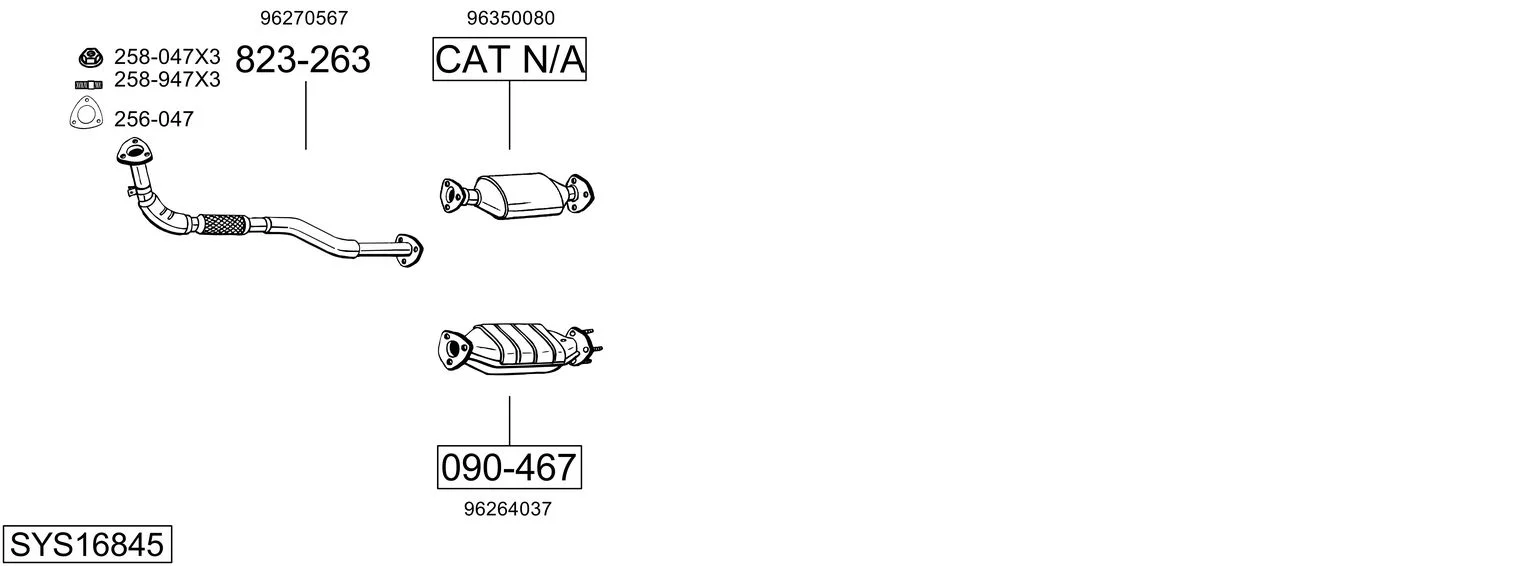 DAEWOO NUBIRA (J100) 1.6 - Výfukový systém - kompletní od 8/2002 do 7/2003, 1598 ccm, 76 kW, 103 hp, A16DMS, Šikmá zadní část