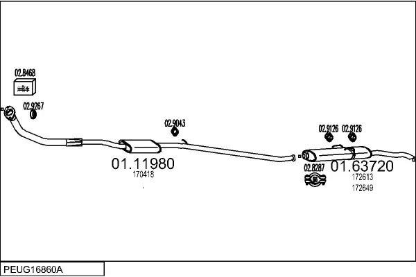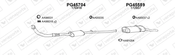 PEUGEOT 309 I (10C, 10A) 1.9 GTI - Výfukový systém - kompletní od 10/1986 do 7/1989, 1905 ccm, 94 kW, 128 hp, D6B (XU9JA), Šikmá zadní část
