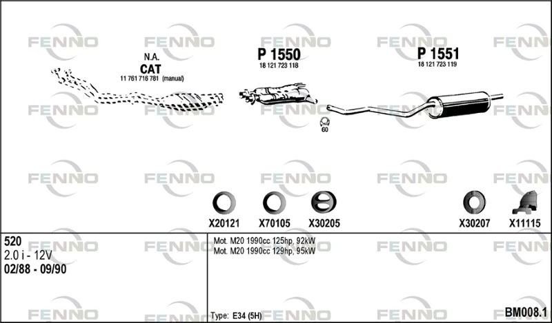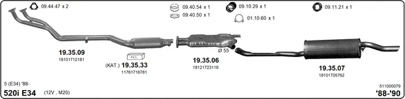 BMW 5 (E34) 520 i - Výfukový systém - kompletní od 6/1987 do 9/1990, 1990 ccm, 95 kW, 129 hp, M20 B20 (206KA), limuzína
