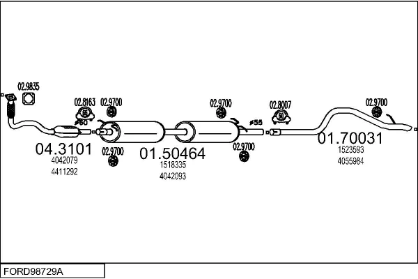 FORD TRANSIT Krabice (FA_ _) 2.4 TD - Výfukový systém - kompletní od 8/2000 do 8/2003, 2402 ccm, 55 kW, 75 hp, F4FA, Krabice
