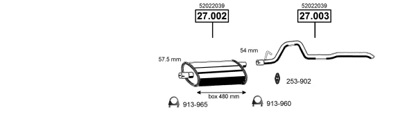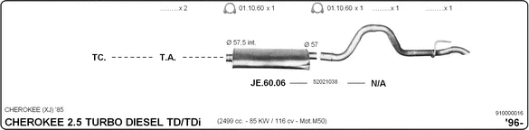 JEEP CHEROKEE (XJ) 2.5 Tdi 4x4 - Výfukový systém - kompletní od 10/1996 do 9/2001, 2498 ccm, 85 kW, 116 hp, ENC, uzavřený terénní vůz
