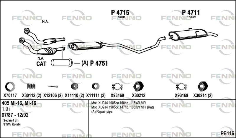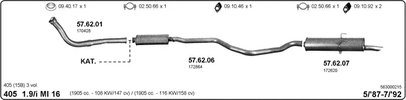 PEUGEOT 405 I (15B) 1.9 Sport MI-16 - Výfukový systém - kompletní od 6/1987 do 7/1992, 1905 ccm, 108 kW, 147 hp, DFW (XU9J4Z), limuzína