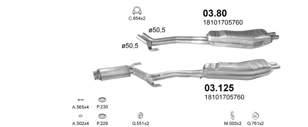 BMW 5 (E34) 525 i 24V - Výfukový systém - kompletní od 3/1990 do 8/1995, 2494 ccm, 141 kW, 192 hp, M50 B25 (256S1), M50 B25 (256S2), limuzína