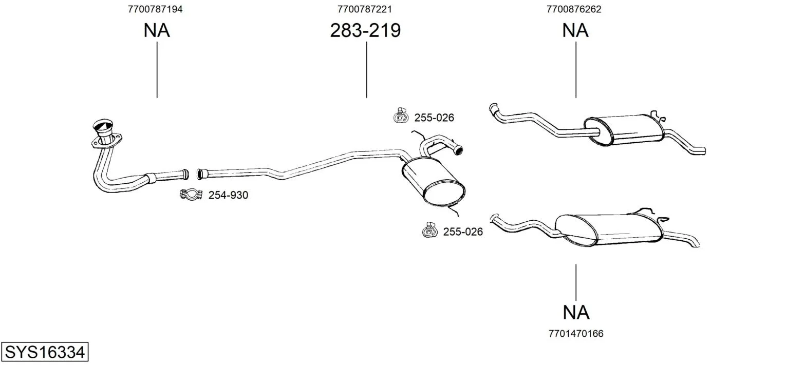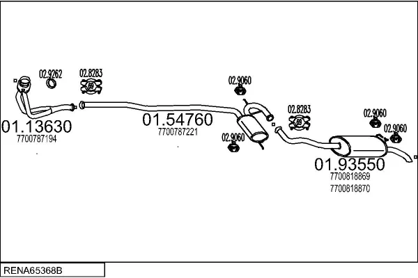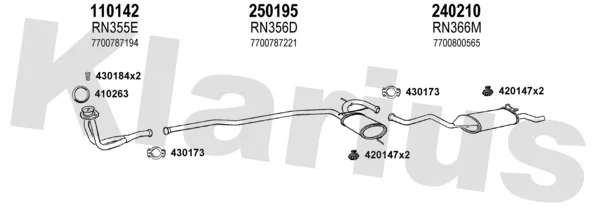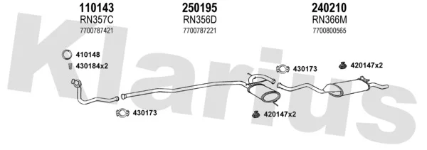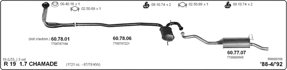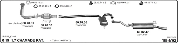 RENAULT 19 I Chamade (L53_) 1.7 (L533) - Výfukový systém - kompletní od 9/1988 do 12/1992, 1721 ccm, 68 kW, 92 hp, F2N 720, F2N 721, limuzína