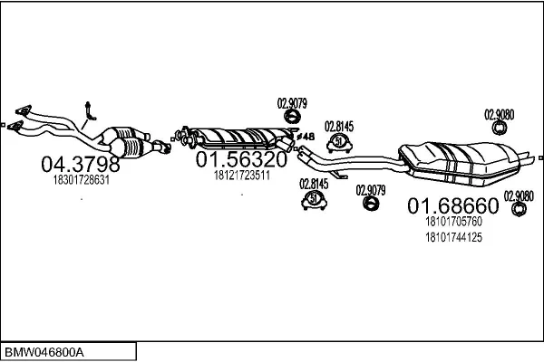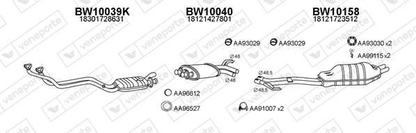 BMW 5 (E34) 525 iX 24V - Výfukový systém - kompletní od 10/1991 do 8/1995, 2494 ccm, 141 kW, 192 hp, M50 B25 (256S1), M50 B25 (256S2), limuzína