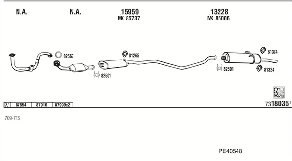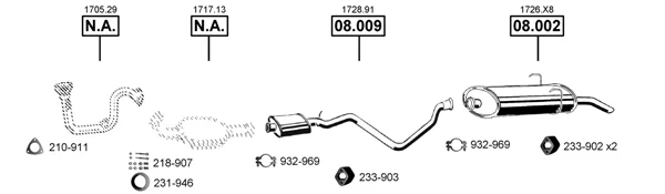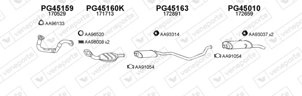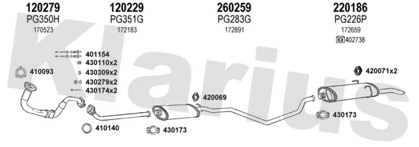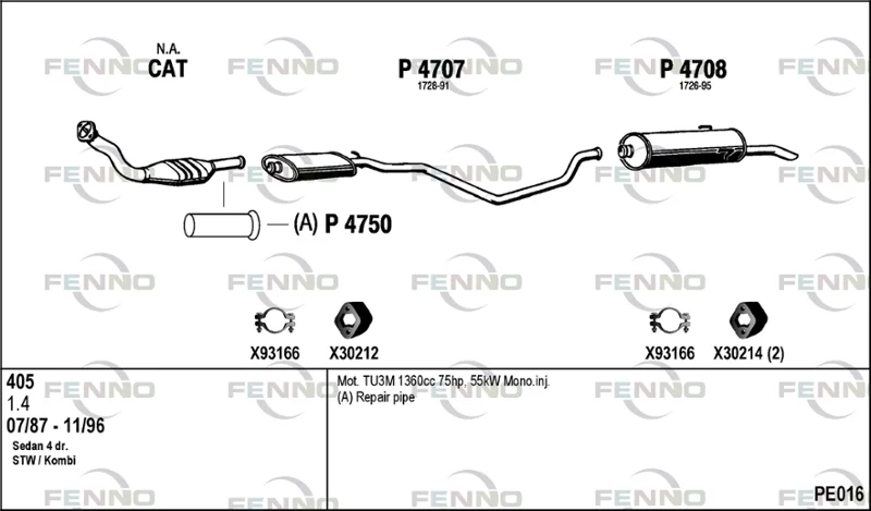 PEUGEOT 405 II Break (4E) 1.4 - Výfukový systém - kompletní od 8/1992 do 10/1996, 1360 ccm, 55 kW, 75 hp, KDX (TU3MC), kombi