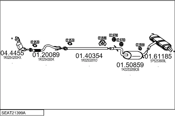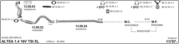 SEAT ALTEA XL (5P5, 5P8) 1.4 TSI - Výfukový systém - kompletní od 11/2007 do 7/2015, 1390 ccm, 92 kW, 125 hp, CAXC, velkoprostorová limuzína