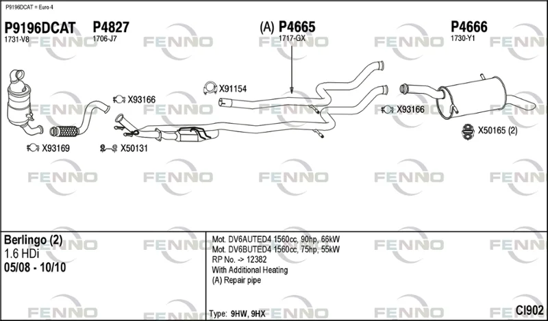 CITROËN BERLINGO Skříňová/velkoprostorová limuzína (B9) 1.6 HDi 75 - Výfukový systém - kompletní od 4/2008, 1560 ccm, 55 kW, 75 hp, 9HT (DV6BTED4), 9HT (DV6BUTED4), Skříňová/velkoprostorová limuzína