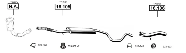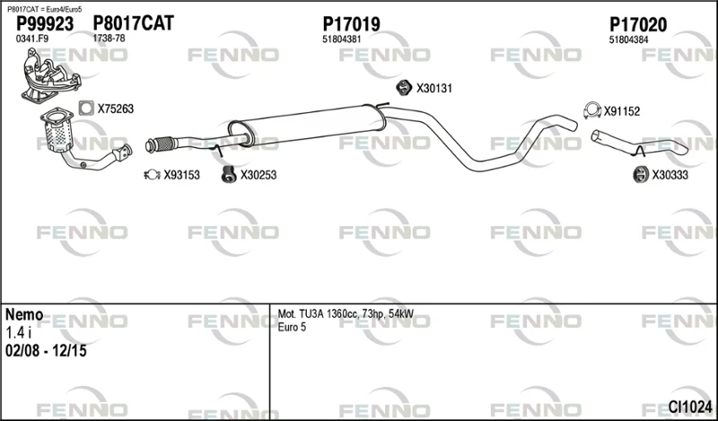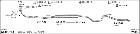 CITROËN NEMO Skříňová/velkoprostorová limuzína (AA_) 1.4 - Výfukový systém - kompletní od 2/2008, 1360 ccm, 54 kW, 73 hp, KFT (TU3AE5), KFV (TU3A), Skříňová/velkoprostorová limuzína