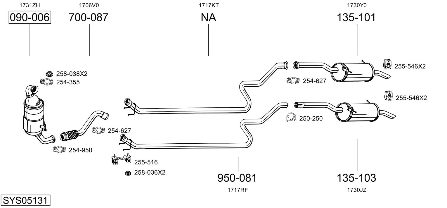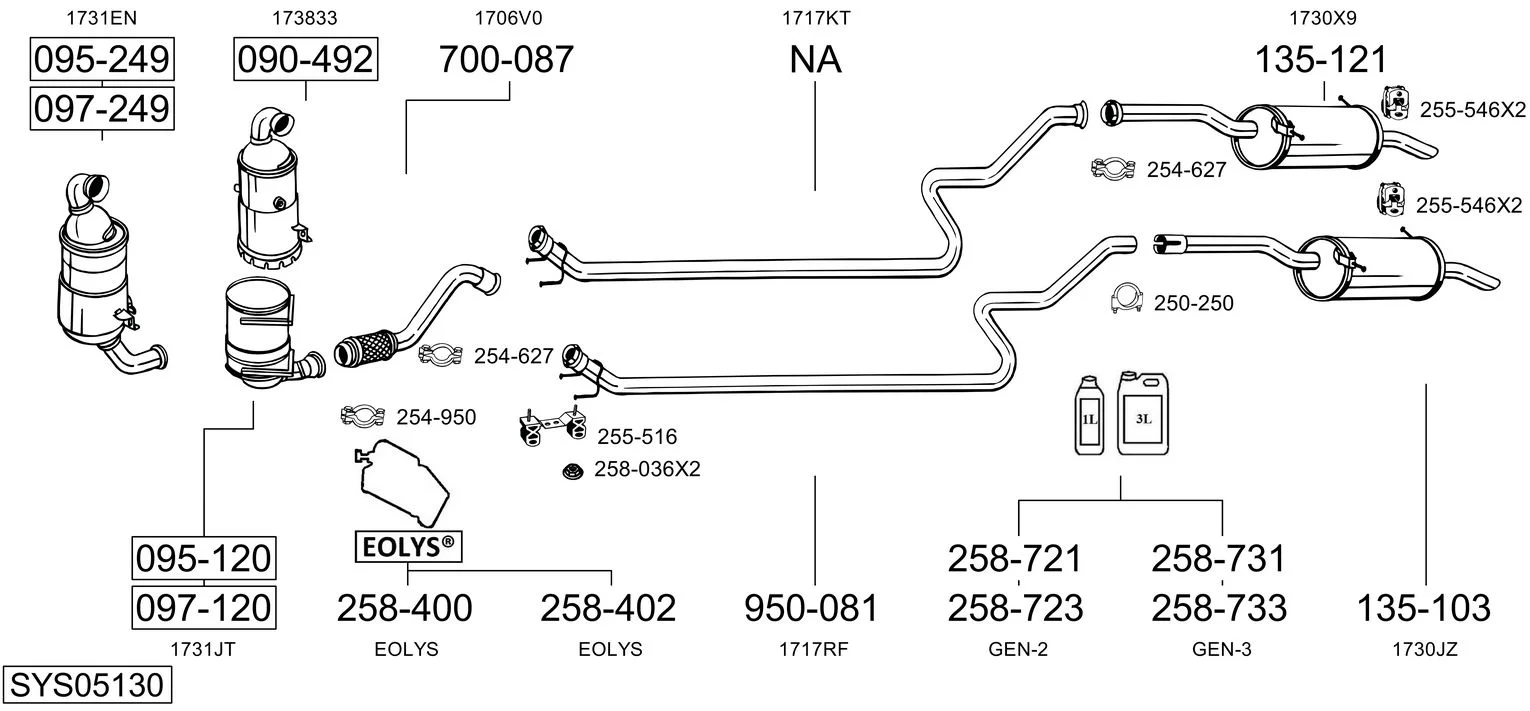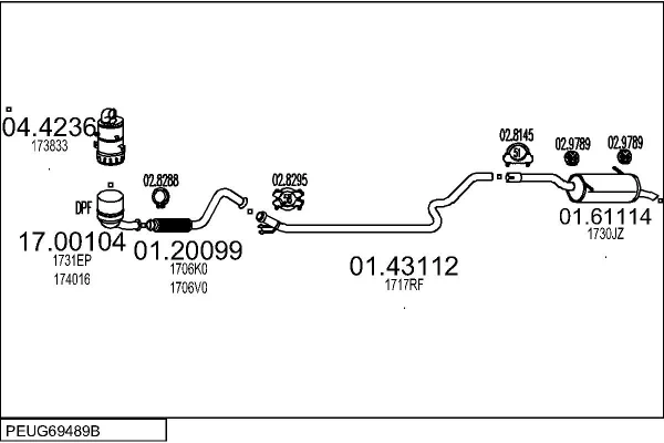 PEUGEOT PARTNER Skříňová/velkoprostorová limuzína 1.6 HDi 16V - Výfukový systém - kompletní od 4/2008, 1560 ccm, 66 kW, 90 hp, 9HS (DV6TED4BU), 9HX (DV6AUTED4), Skříňová/velkoprostorová limuzína