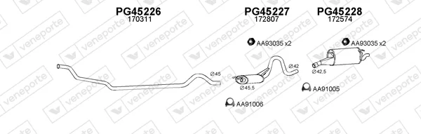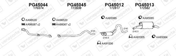 PEUGEOT 505 Break (551D) 2.5 Diesel - Výfukový systém - kompletní od 8/1983 do 12/1993, 2498 ccm, 55 kW, 75 hp, 155 (XD3), kombi