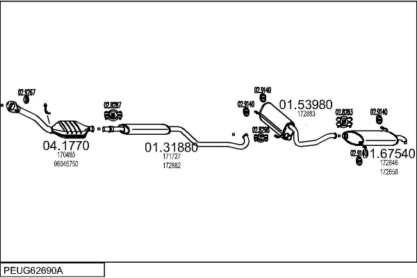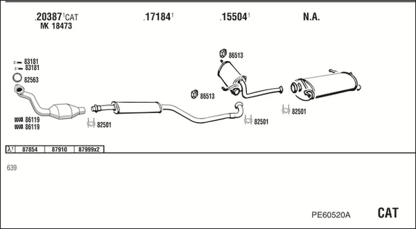 PEUGEOT 605 (6B) 2.0 - Výfukový systém - kompletní od 6/1989 do 9/1999, 1998 ccm, 89 kW, 121 hp, RFZ (XU10J2Z), limuzína