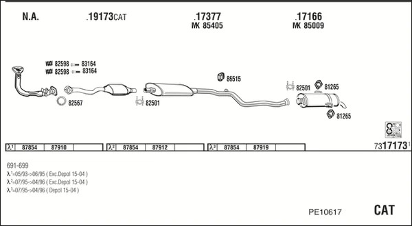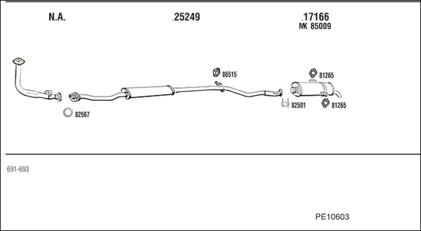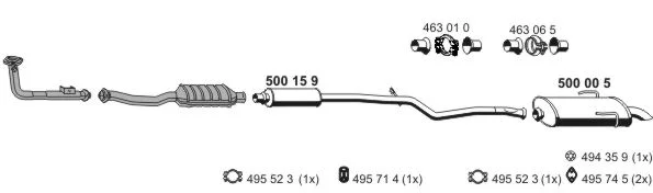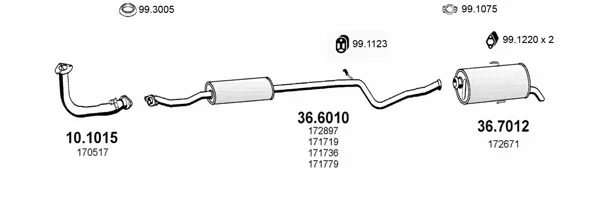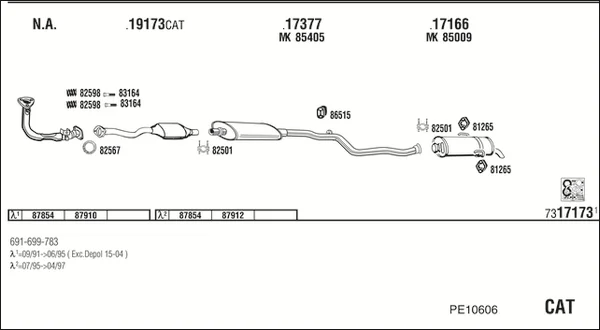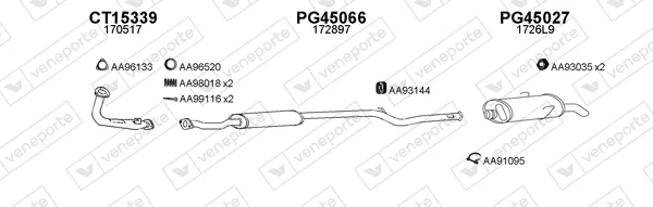 PEUGEOT 106 I (1A, 1C) 1.4 - Výfukový systém - kompletní od 9/1991 do 4/1996, 1360 ccm, 55 kW, 75 hp, KDX (TU3MC), KDY (TU3M), Šikmá zadní část