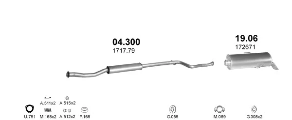 PEUGEOT 106 I (1A, 1C) 1.4 - Výfukový systém - kompletní od 9/1991 do 4/1996, 1360 ccm, 55 kW, 75 hp, KDX (TU3MC), KDY (TU3M), Šikmá zadní část