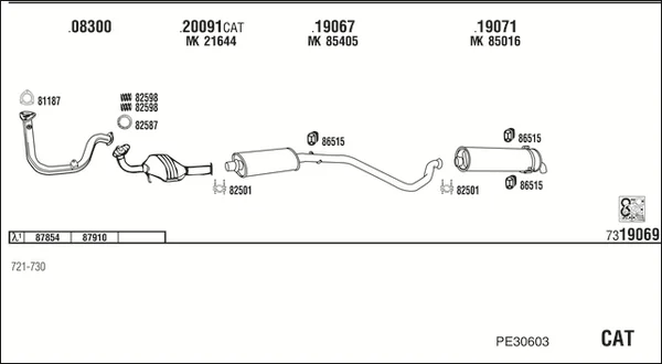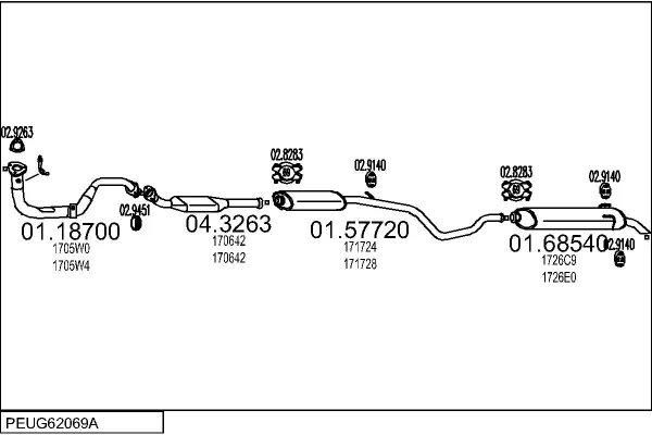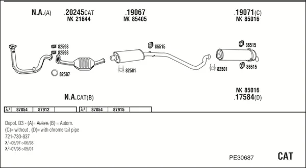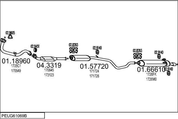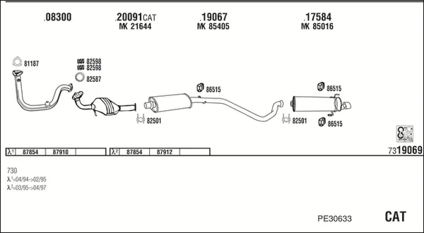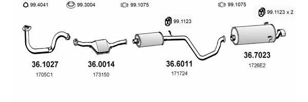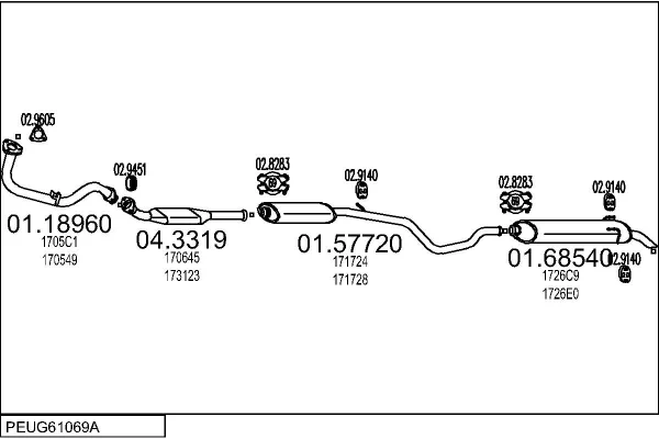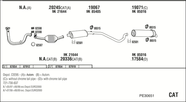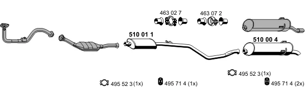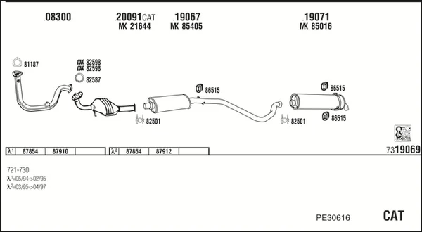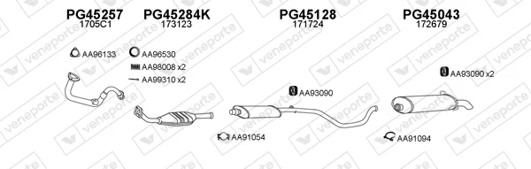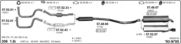 PEUGEOT 306 Šikmá zadní část (7A, 7C, N3, N5) 1.6 - Výfukový systém - kompletní od 5/1993 do 10/2000, 1587 ccm, 65 kW, 89 hp, NFZ (TU5JP), Šikmá zadní část