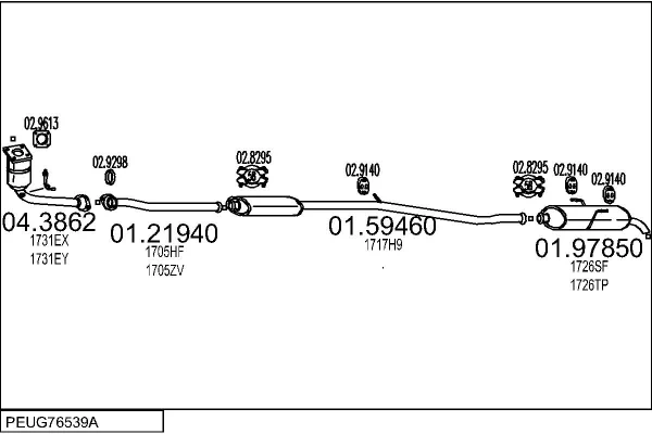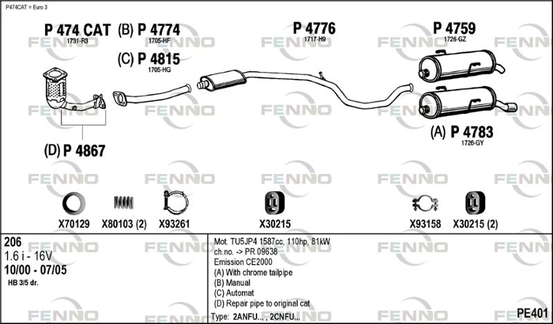 PEUGEOT 206 Šikmá zadní část (2A/C) 1.6 16V - Výfukový systém - kompletní od 6/2001 do 4/2009, 1587 ccm, 79 kW, 107 hp, NFU (TU5JP4), Šikmá zadní část