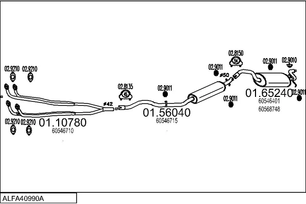 ALFA ROMEO 33 (907_) 1.7 16V 4x4 (907.A1G) - Výfukový systém - kompletní od 1/1990 do 9/1994, 1712 ccm, 97 kW, 132 hp, AR 30747, Šikmá zadní část