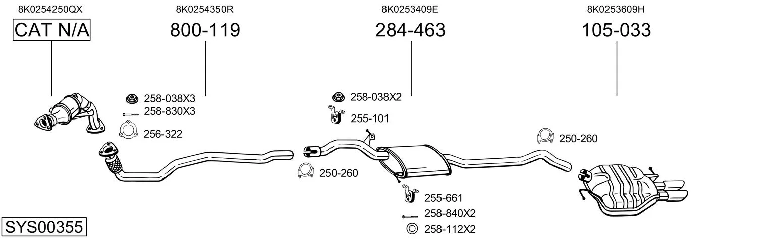 AUDI A4 B8 (8K2) 1.8 TFSI - Výfukový systém - kompletní od 1/2008 do 12/2015, 1798 ccm, 88 kW, 120 hp, CABA, CDHA, limuzína