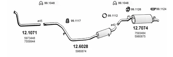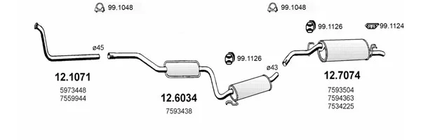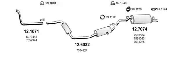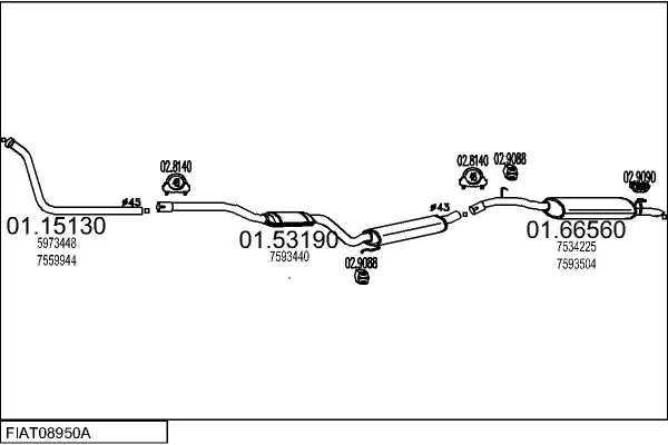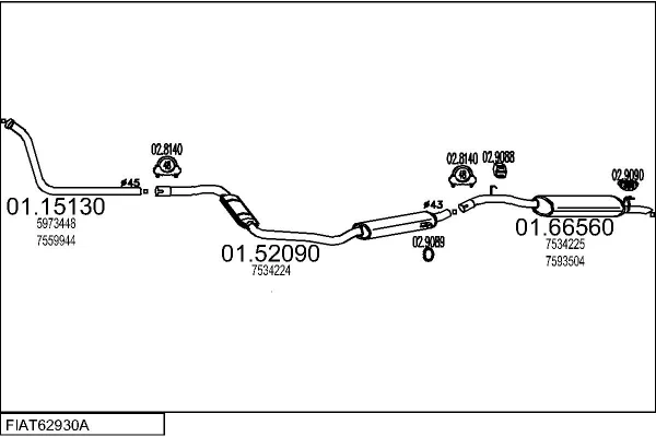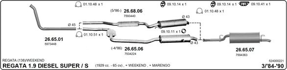 FIAT REGATA (138_) 65 Diesel 1.9 - Výfukový systém - kompletní od 4/1984 do 7/1989, 1929 ccm, 48 kW, 65 hp, 149 A1.000, limuzína