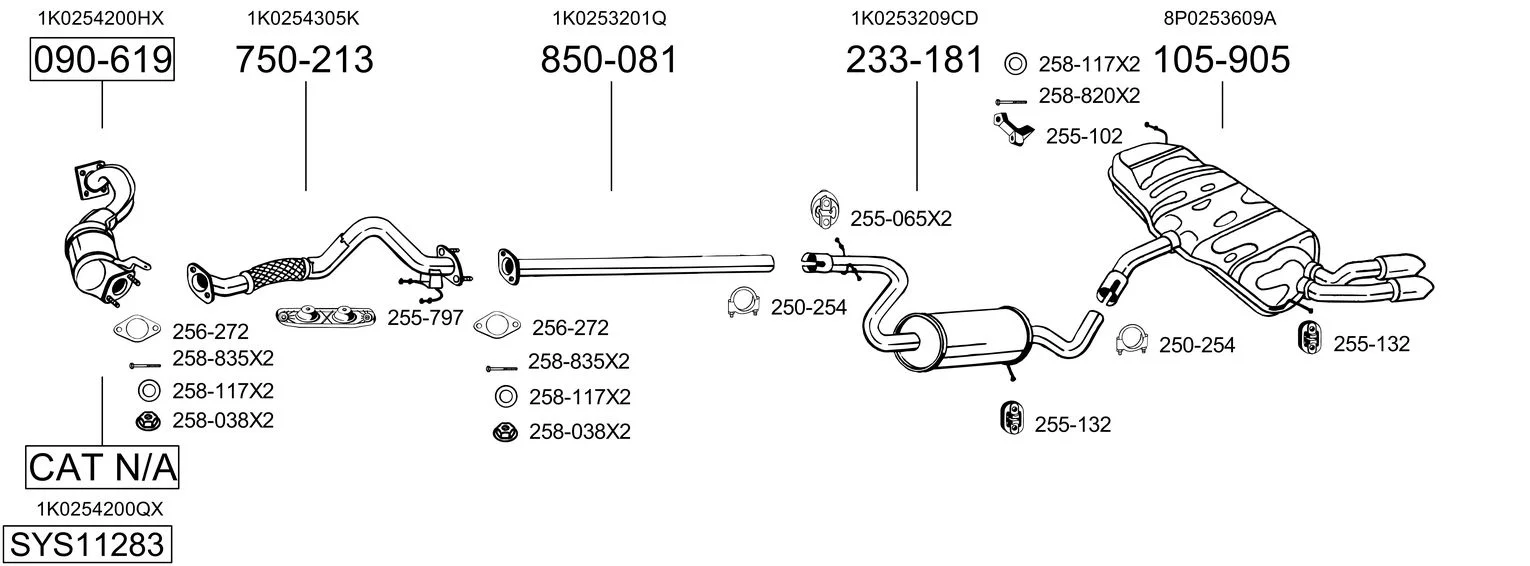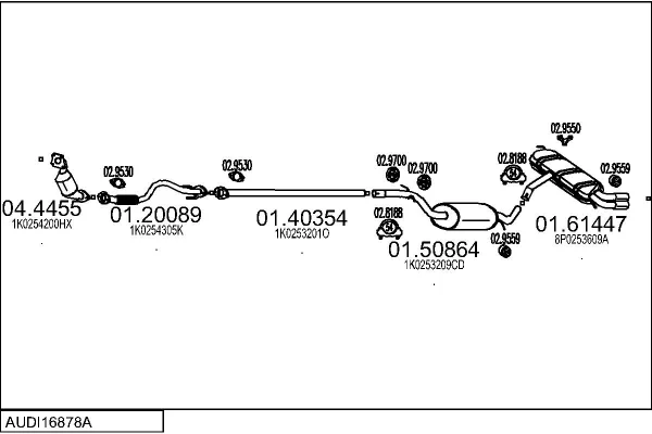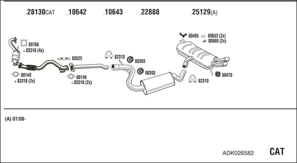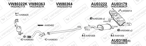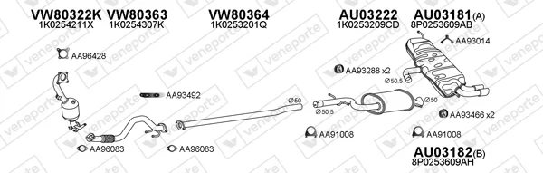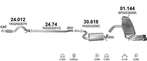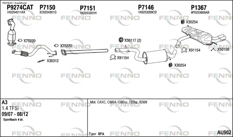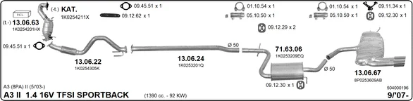 AUDI A3 Sportback (8PA) 1.4 TFSI - Výfukový systém - kompletní od 9/2007 do 3/2013, 1390 ccm, 92 kW, 125 hp, CAXC, CMSA, Šikmá zadní část