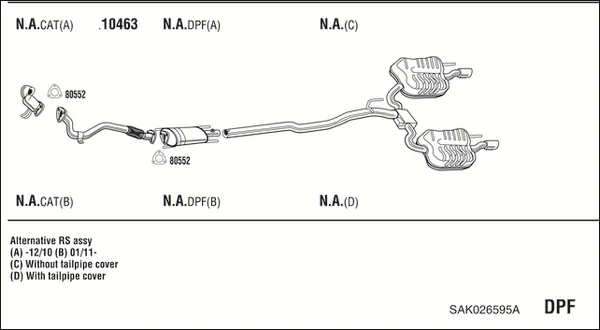 SAAB 9-3 Kabriolet (YS3F) 1.9 TTiD - Výfukový systém - kompletní od 12/2007 do 2/2015, 1910 ccm, 132 kW, 180 hp, A 19 DTR, Z 19 DTR, Kabriolet