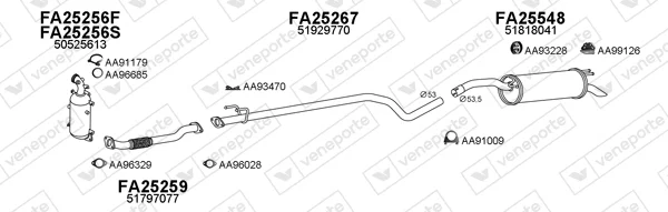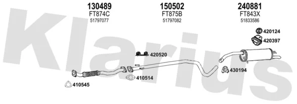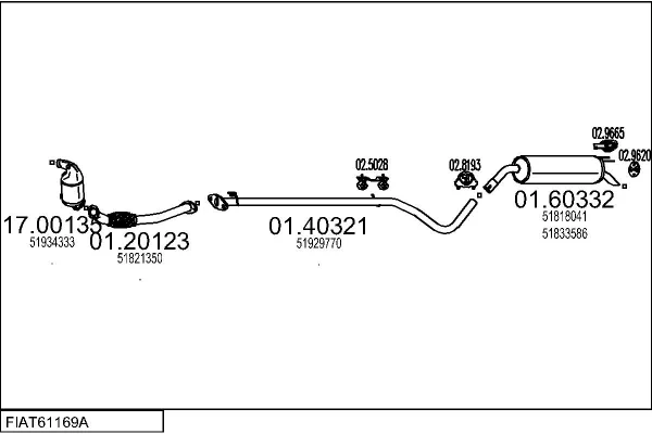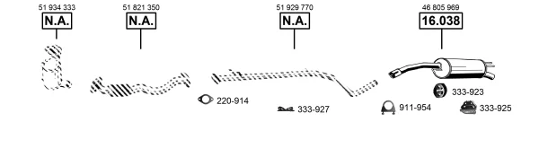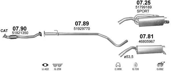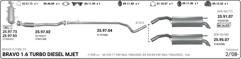 FIAT BRAVO II (198_) 1.6 D Multijet (198AXH1B) - Výfukový systém - kompletní od 9/2007 do 12/2014, 1598 ccm, 77 kW, 105 hp, 198 A3.000, 844 A3.000, Šikmá zadní část