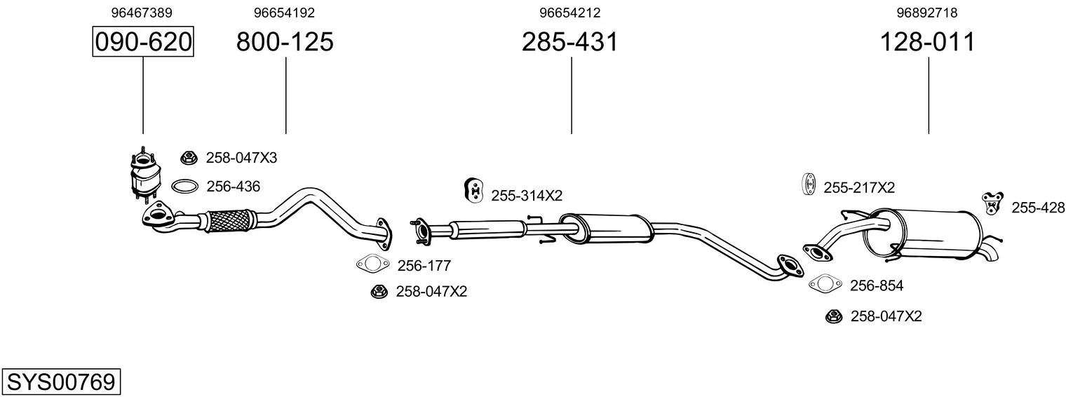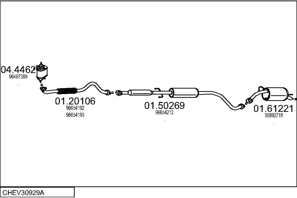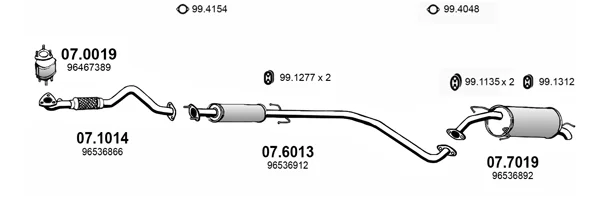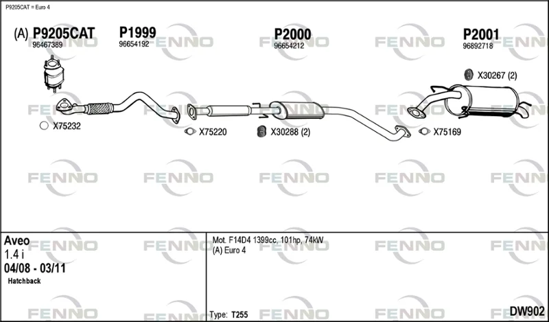 CHEVROLET AVEO / KALOS Šikmá zadní část (T250, T255) 1.4 - Výfukový systém - kompletní od 4/2008, 1399 ccm, 74 kW, 101 hp, LDT, Šikmá zadní část