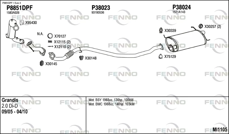 MITSUBISHI GRANDIS (NA_W) 2.0 DI-D (NA8W) - Výfukový systém - kompletní od 2/2007 do 3/2010, 1968 ccm, 103 kW, 140 hp, BWC, velkoprostorová limuzína