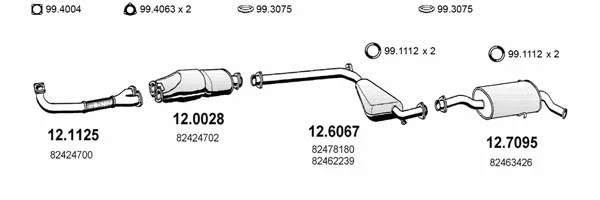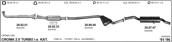 FIAT CROMA (154_) 2000 i.e. Turbo (154.AM, 154.LM) - Výfukový systém - kompletní od 6/1987 do 8/1996, 1995 ccm, 110 kW, 150 hp, 154 C4.046, 834 C.146, Šikmá zadní část