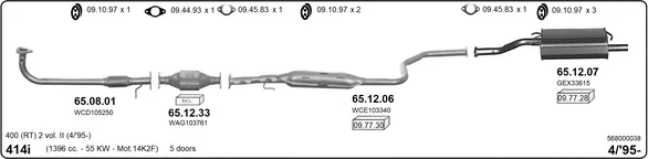 ROVER 400 II Šikmá zadní část (RT) 414 - Výfukový systém - kompletní od 3/1996 do 12/1997, 1396 ccm, 55 kW, 75 hp, 14 K2F, Šikmá zadní část