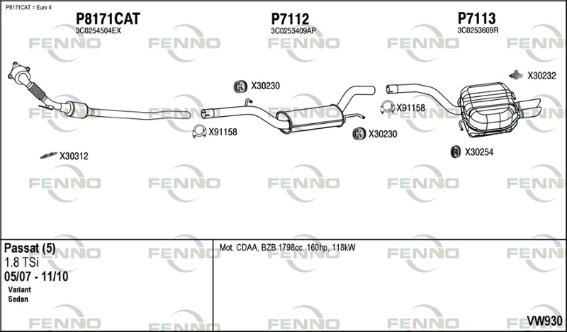 VW PASSAT B6 Variant (3C5) 1.8 TSI - Výfukový systém - kompletní od 5/2007 do 10/2011, 1798 ccm, 118 kW, 160 hp, BZB, CDAA, kombi