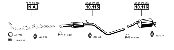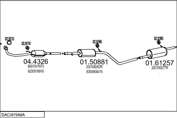 DACIA SANDERO 1.6 (BS0D, BS0B, BS0F, BS0H) - Výfukový systém - kompletní od 6/2008, 1598 ccm, 64 kW, 87 hp, K7M 710, K7M 718, Šikmá zadní část