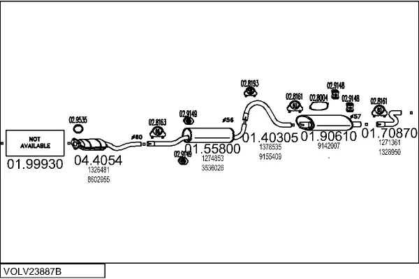 VOLVO 740 Kombi (745) 2.3 Turbo - Výfukový systém - kompletní od 8/1986 do 7/1989, 2316 ccm, 115 kW, 156 hp, B 230 FT, kombi