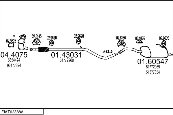 FIAT PANDA Schránky/šikmá záď (169_) 1.3 D Multijet - Výfukový systém - kompletní od 3/2004, 1248 ccm, 51 kW, 70 hp, 188 A8.000, Schránky/šikmá záď