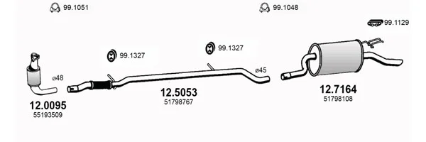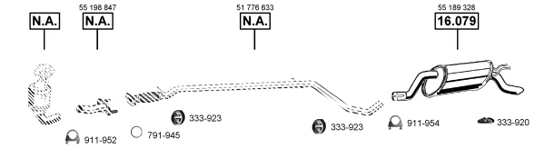 FIAT PUNTO Schránky/šikmá záď (188_) 1.3 JTD - Výfukový systém - kompletní od 6/2003 do 10/2005, 1248 ccm, 51 kW, 69 hp, 188 A9.000, Schránky/šikmá záď