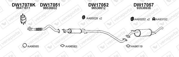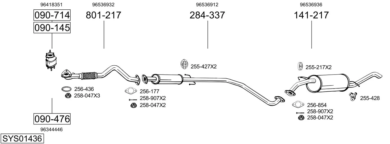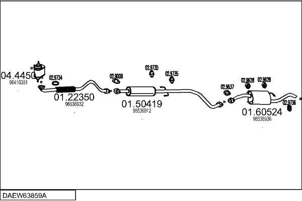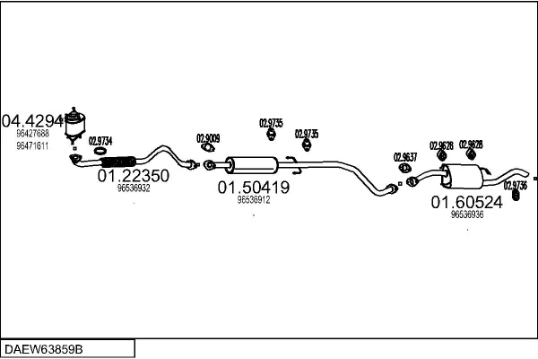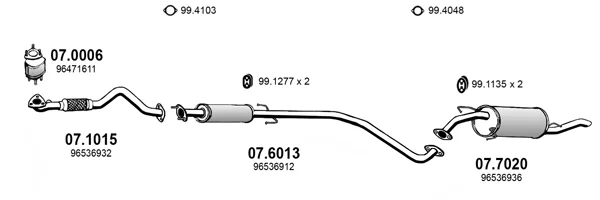 DAEWOO KALOS limuzína (KLAS) 1.4 - Výfukový systém - kompletní od 11/2002 do 12/2004, 1399 ccm, 61 kW, 83 hp, F14S3, limuzína