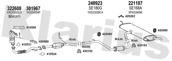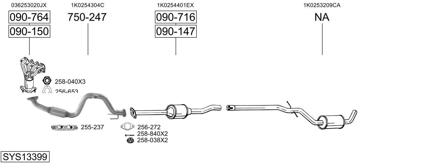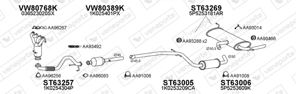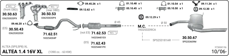 SEAT ALTEA XL (5P5, 5P8) 1.4 16V - Výfukový systém - kompletní od 10/2006 do 6/2013, 1390 ccm, 63 kW, 86 hp, BXW, CGGB, velkoprostorová limuzína