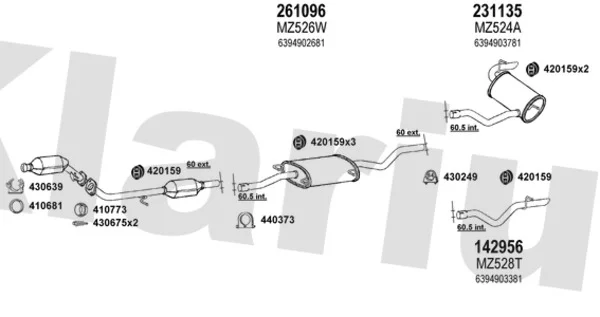 MERCEDES-BENZ VITO / MIXTO Krabice (W639) 111 CDI (639.601, 639.603) - Výfukový systém - kompletní od 9/2007, 2148 ccm, 85 kW, 116 hp, OM 646.980, OM 646.982, Krabice
