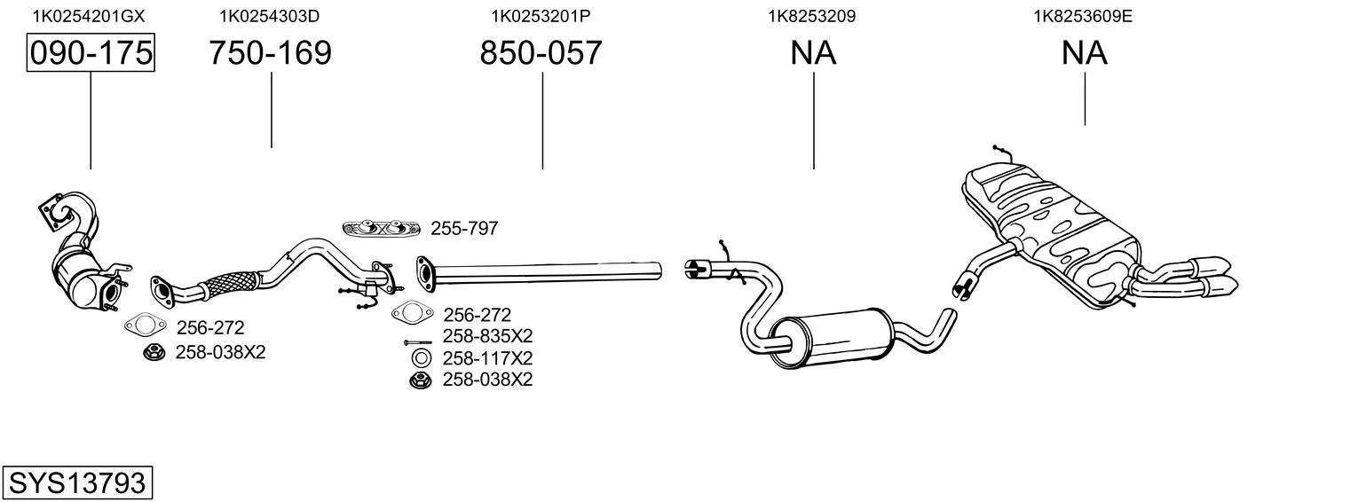 VW SCIROCCO III (137, 138) 1.4 TSI - Výfukový systém - kompletní od 5/2008 do 11/2017, 1390 ccm, 118 kW, 160 hp, CAVD, CNWA, CTHD, CTKA, kupé