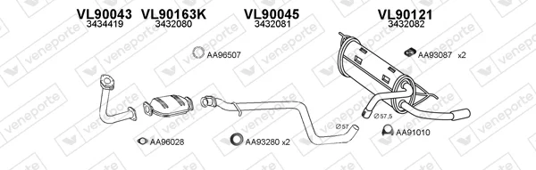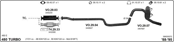 VOLVO 480 (482) 1.7 Turbo - Výfukový systém - kompletní od 1/1991 do 7/1996, 1721 ccm, 90 kW, 122 hp, B 18 FT, kupé