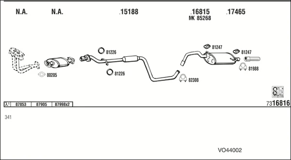 VOLVO 440 (445) 1.7 - Výfukový systém - kompletní od 8/1988 do 7/1989, 1721 ccm, 70 kW, 95 hp, B 18 F, Šikmá zadní část