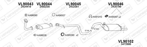 VOLVO 440 (445) 1.7 Turbo - Výfukový systém - kompletní od 8/1988 do 7/1996, 1721 ccm, 88 kW, 120 hp, B 18 FT, Šikmá zadní část