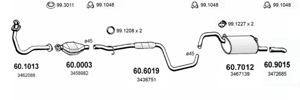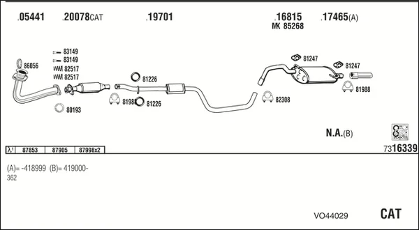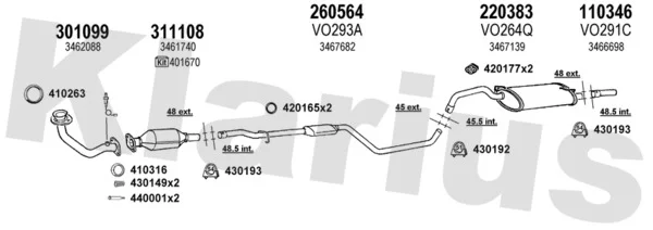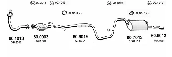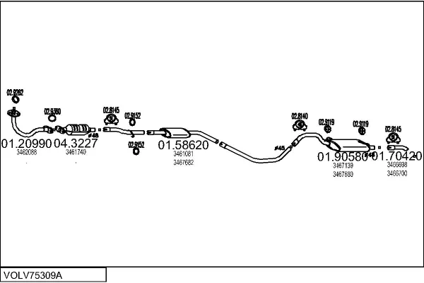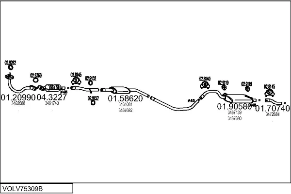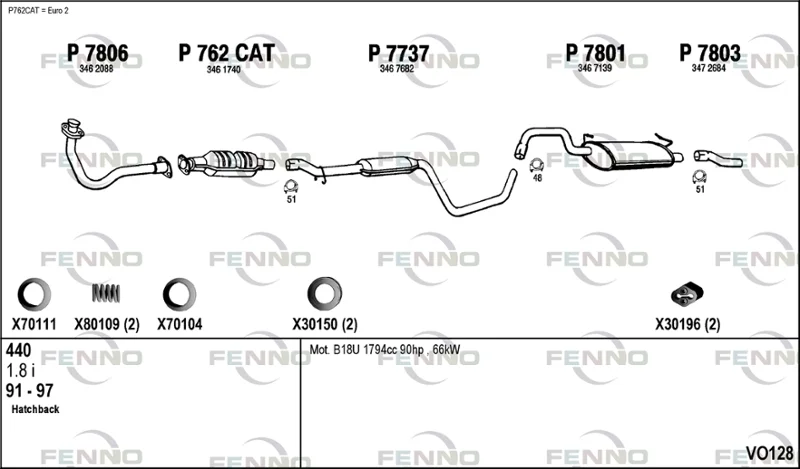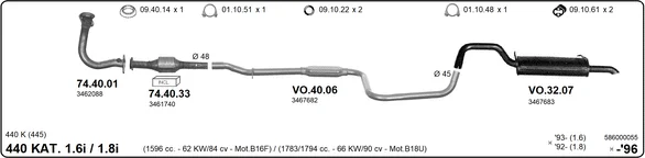 VOLVO 440 (445) 1.8 - Výfukový systém - kompletní od 8/1991 do 7/1996, 1794 ccm, 66 kW, 90 hp, B 18 U, Šikmá zadní část