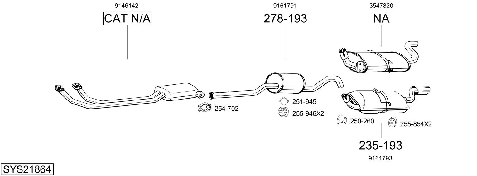 VOLVO 960 Kombi (965) 2.9 - Výfukový systém - kompletní od 8/1990 do 7/1994, 2922 ccm, 150 kW, 204 hp, B 6304 F, B 6304 S, kombi