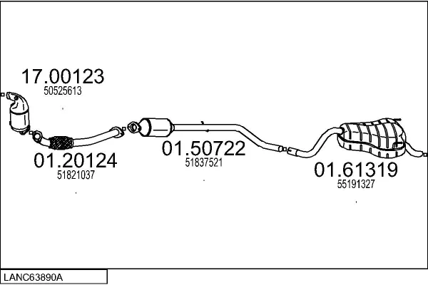 LANCIA MUSA (350_) 1.6 D Multijet (350.AXH1A) - Výfukový systém - kompletní od 7/2008 do 9/2012, 1598 ccm, 88 kW, 120 hp, 350 A2.000, velkoprostorová limuzína