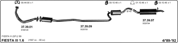 FORD FIESTA III (GFJ) 1.6 - Výfukový systém - kompletní od 3/1989 do 12/1992, 1597 ccm, 66 kW, 90 hp, LUH, Šikmá zadní část