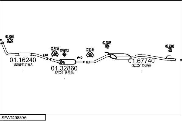 SEAT TERRA karoserie/kombi (024A) 1.4 D - Výfukový systém - kompletní od 10/1990 do 2/1992, 1398 ccm, 35 kW, 48 hp, 1 W, karoserie/kombi