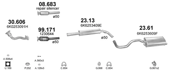 SEAT IBIZA II (6K1) 1.9 SDI - Výfukový systém - kompletní od 8/1996 do 8/1999, 1896 ccm, 47 kW, 64 hp, AEY, Šikmá zadní část